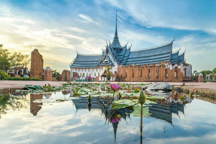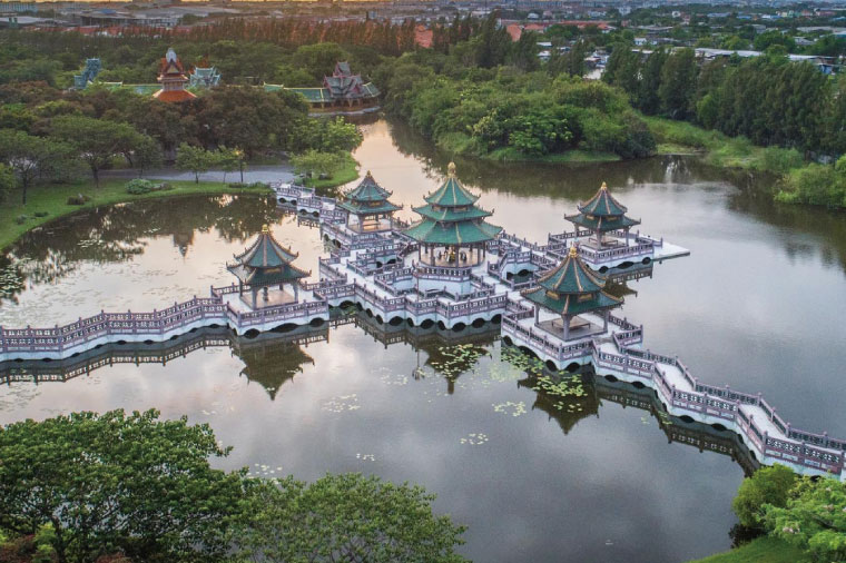 【暹羅古城(76府古城)縮影公園】THE ANCIENT CITY BANGKOK 76 這是泰國旅遊局列為文化行程之一,1963年創立的古城,佔地80萬平方公尺;號稱全世界最大的【露天博物館】,讓您輕鬆參觀。園內有泰國各府重要的古蹟同尺寸模型,每個模型都是專家考據設計、形態逼真;是泰國文化蒐集地;等您參觀完後,已經把全泰國古蹟看了一遍,當然裡面更有失傳的藝術表演,是一個非常值得去探索思考泰國傳統文化藝術的地方。然而這裡融合了全泰國各府名勝古蹟,景點有素可泰府的遺跡、大城府遺跡、清邁雙龍寺、傳統泰國百年老街、水上市場、觀音廟、泰國各府大佛塔、黃金大佛、中國廟宇、藏経閣、避寒山寺…等名勝古蹟此古蹟可以說是有山有水風景明媚的好地方,甚至府內到處還有梅花鹿穿梭在古蹟中與您為伍著、樹上的小松鼠上下的覓食以及蓮花池中的魚兒游來游去、花兒綻放、樹叢林悠悠飄來的樹香味兒…等。這些讓人想不到的美景,好像一幅畫就在我們的眼前,迎接著我們的到來,這趟古城之旅讓您值回票價喔!