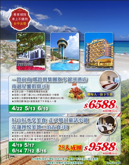• 晚餐,遊覽車車資,午餐,住宿費用,飯店早餐,全程住宿2人1室,飯店晚餐,250萬旅遊責任險+20萬意外醫療險